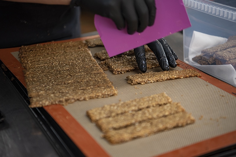 Schlorzifladen mit schwarzen Kakaogranulaten und Birnenvarianten